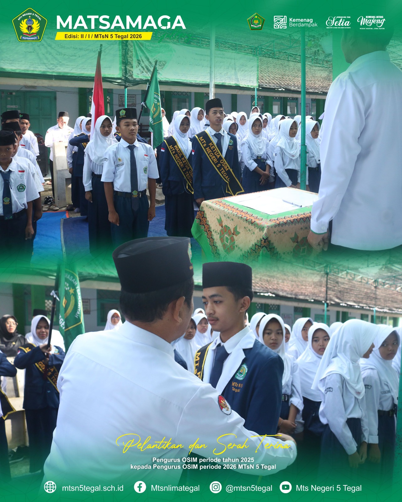 Pelantikan OSIM dipimpin langsung oleh Kepala Madrasah MTsN 5 Tegal, Fatchurodji. Dalam prosesi tersebut, pengurus OSIM periode sebelumnya secara resmi menyerahkan tanggung jawab kepengurusan kepada pengurus OSIM yang baru sebagai bentuk keberlanjutan kepemimpinan dan organisasi siswa di lingkungan madrasah.
