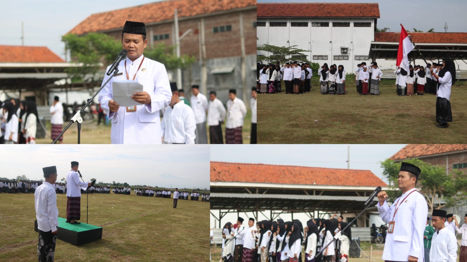 Pangkah — Dalam rangka memperingati Hari Santri Nasional 2025, keluarga besar MTs Negeri 5 Tegal melaksanakan upacara bendera yang berlangsung khidmat di Lapangan Pecabean, Rabu (22/10).